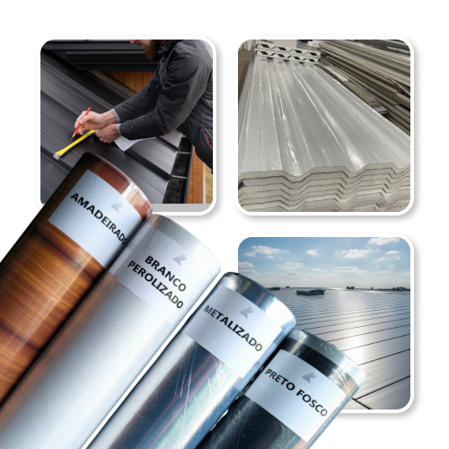 Aplique o filme sobre telhas térmicas com núcleo de EPS, PU ou PIR. Certifique-se de que a superfície esteja limpa, seca e livre de poeiras ou gorduras.