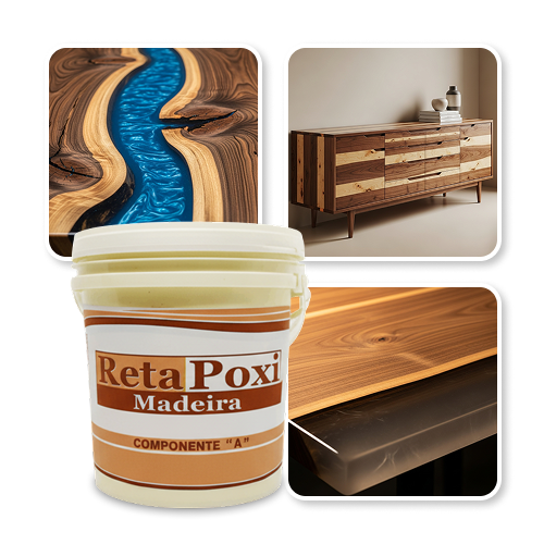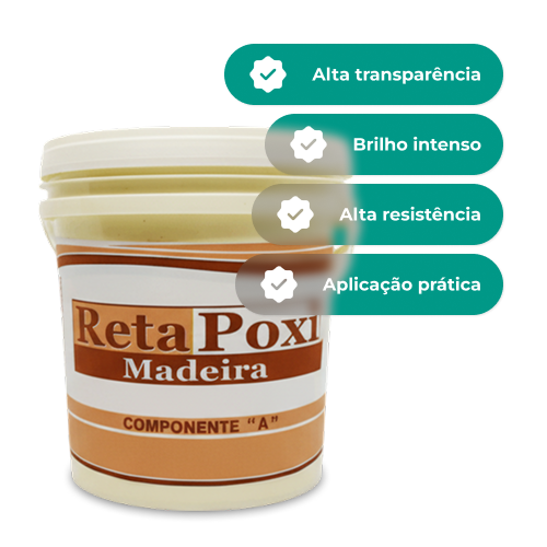 Retapoxi Madeira é uma resina epóxi transparente de alto desempenho para madeira, river tables e acabamentos vitrificados. Oferece efeito cristal, alta resistência e acabamento decorativo premium para projetos exigentes.