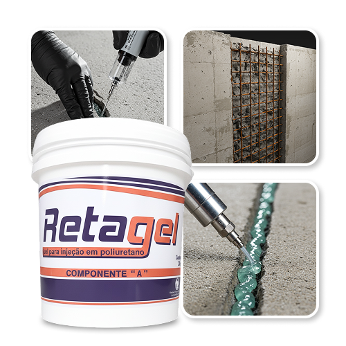 Retagel é um gel expansivo  bicomponente de poliuretano de baixa viscosidade, ideal para injeção em trincas e fissuras. Desenvolvida para vedar infiltrações em estruturas de concreto com alta eficiência e durabilidade.