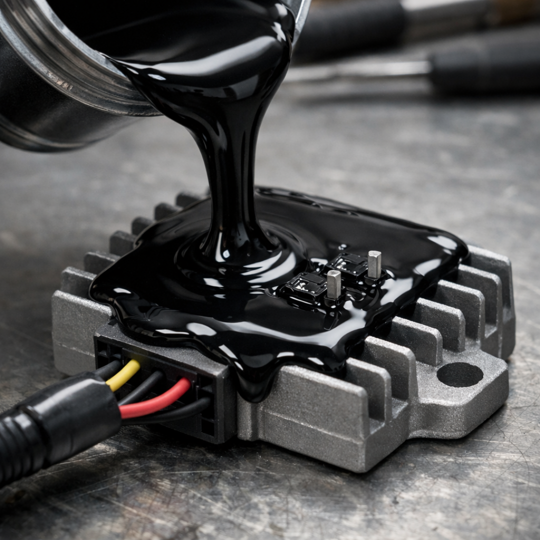 Resina isolante em poliuretano de alta rigidez dielétrica e resistência térmica, ideal para aplicações em retificadores, transformadores, bobinas, placas e circuitos eletrônicos.